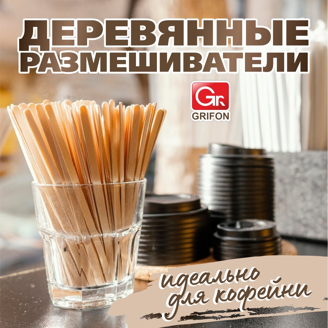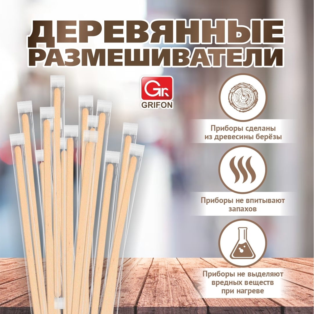 Удобная длина, плоская форма делают одноразовые деревянные размешиватели GRIFON великолепным аксессуаром в любом заведении, где предусмотрена подача различных напитков. Деревянные размешиватели обладают рядом преимуществ: